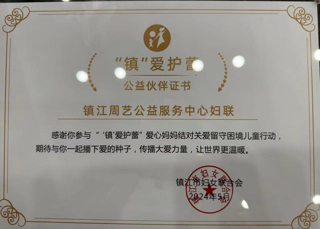 活动上,发布了“齐守护 童向阳”倡议书;启动“‘镇’爱护蕾”爱心妈妈结对关爱留守困境儿童行动,向周艺公益妇联等爱心团队颁发了公益伙伴证书。
