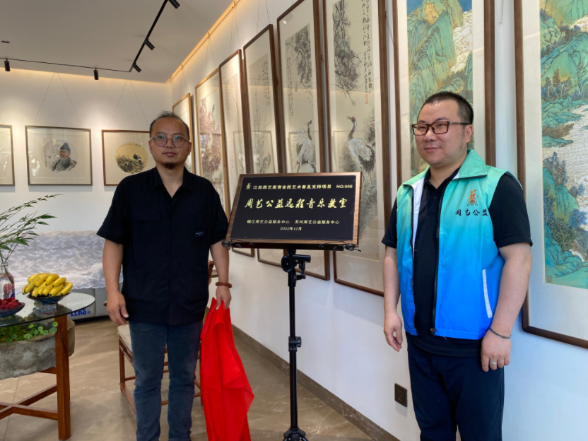 6月8日,镇江周艺公益远程音乐教室在宜兴市官林镇前城村墨云楼邹柏兴艺术工作室,举行揭牌仪式。