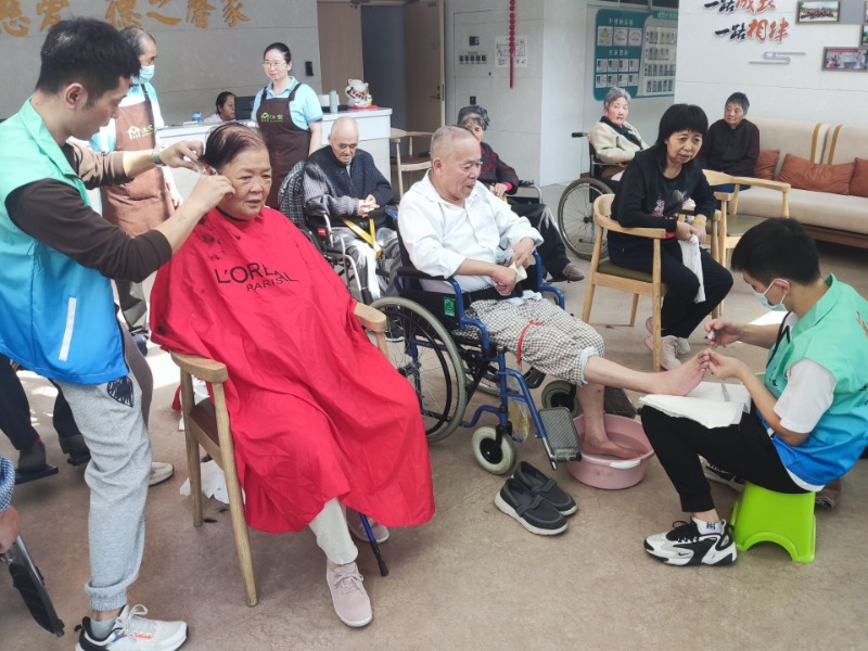 一进护理院,志愿者们就热情的和老人们打招呼,“您老精神真好”“您头发有些长,我帮你剪啊”“水温还好吗?您泡下脚”。老人们围上来,选择需要服务的项目。志愿者们忙里忙外,一上午服务了40多位老人。