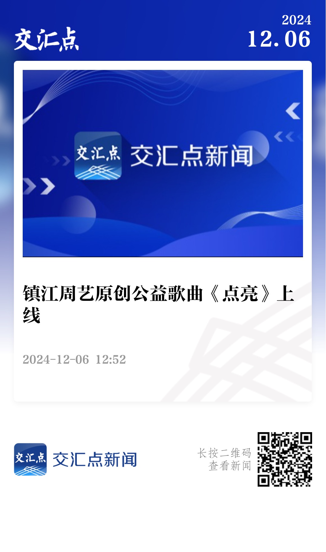 交汇点讯 “走在,这条路上,抬头仰望,融化的星光…… 我们来帮你点亮……点亮你的眼睛你的心,点亮这座城市这天地,点亮下个春天的秘密……”在12月5日、第39个国际志愿者日到来之际,近日,一首由镇江志愿者创作、赞美志愿公益事业的歌曲《点亮》在网易云音乐、QQ音乐等音乐平台上线,引起网友广泛关注。