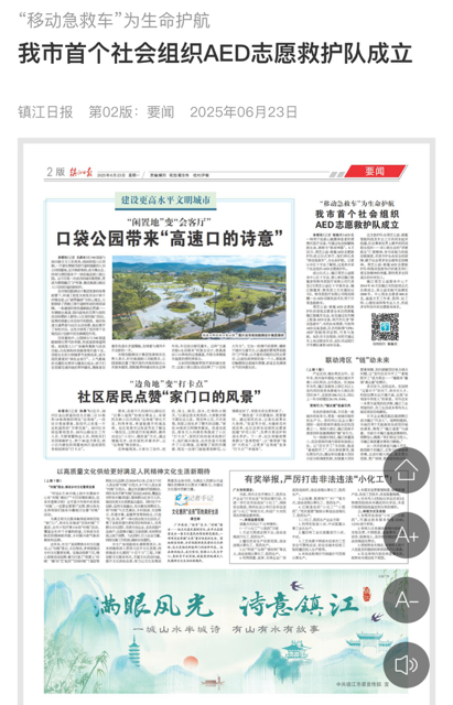 本报讯(记者 张驰川)AED是一种用于抢救心跳骤停患者的便携式医疗设备,可通过电击除颤挽救生命,被称为“救命神器”。6月22日,周艺公益·极氪AED志愿救护队成立仪式举行,他们将化身“移动急救车”,为生命护航。记者从市红十字会了解到,这是我市首个社会组织AED志愿救护队。