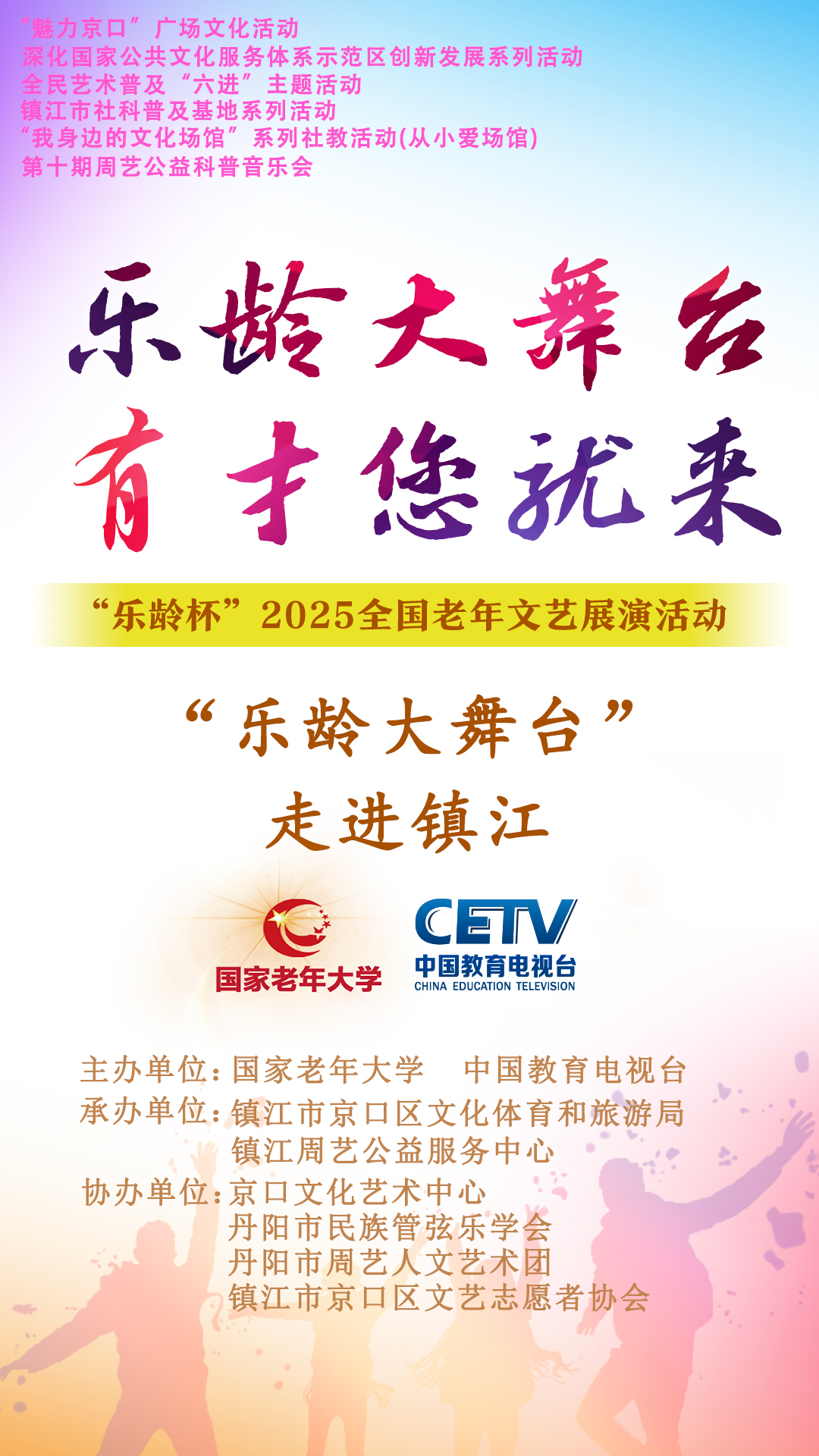 为深入贯彻党的二十届三中全会精神及全国教育大会部署,推动终身教育体系高质量发展,镇江周艺公益服务中心联合京口区文体旅局,将于2025年6月16日下午在京口文化艺术中心举办第十期周艺公益科普音乐会,同步开展“乐龄大舞台”走进镇江公益直播活动。