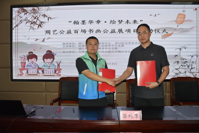 爱心企业——无锡晋云信息科技有限公司镇江分公司积极响应公益号召,与周艺公益现场签订共建协议。分公司负责人张金表示,晋云信息科技在未来五年的时间里将赞助十万元专项经费给周艺公益,为“翰墨华章•绘梦未来”项目的稳步推进注入强大动力,该项资金将用于举办文化类公益活动及文化阵地建设,推动传统文化普惠于民。