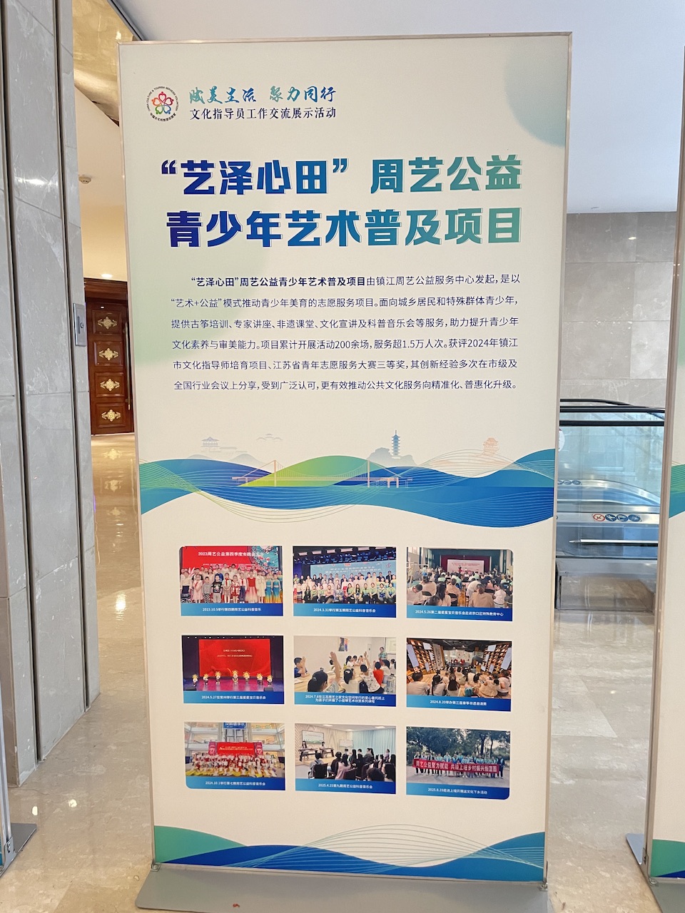 9月17日,由文化和旅游部主办、江苏省文化和旅游厅支持、镇江市文化广电和旅游局承办的文化指导员工作交流展示活动在镇江举办。活动聚焦总结推广文化指导员工作先进经验、推动文旅志愿服务高质量发展,镇江周艺公益服务中心的“艺泽心田”青少年艺术普及项目,作为优秀案例现场亮相。