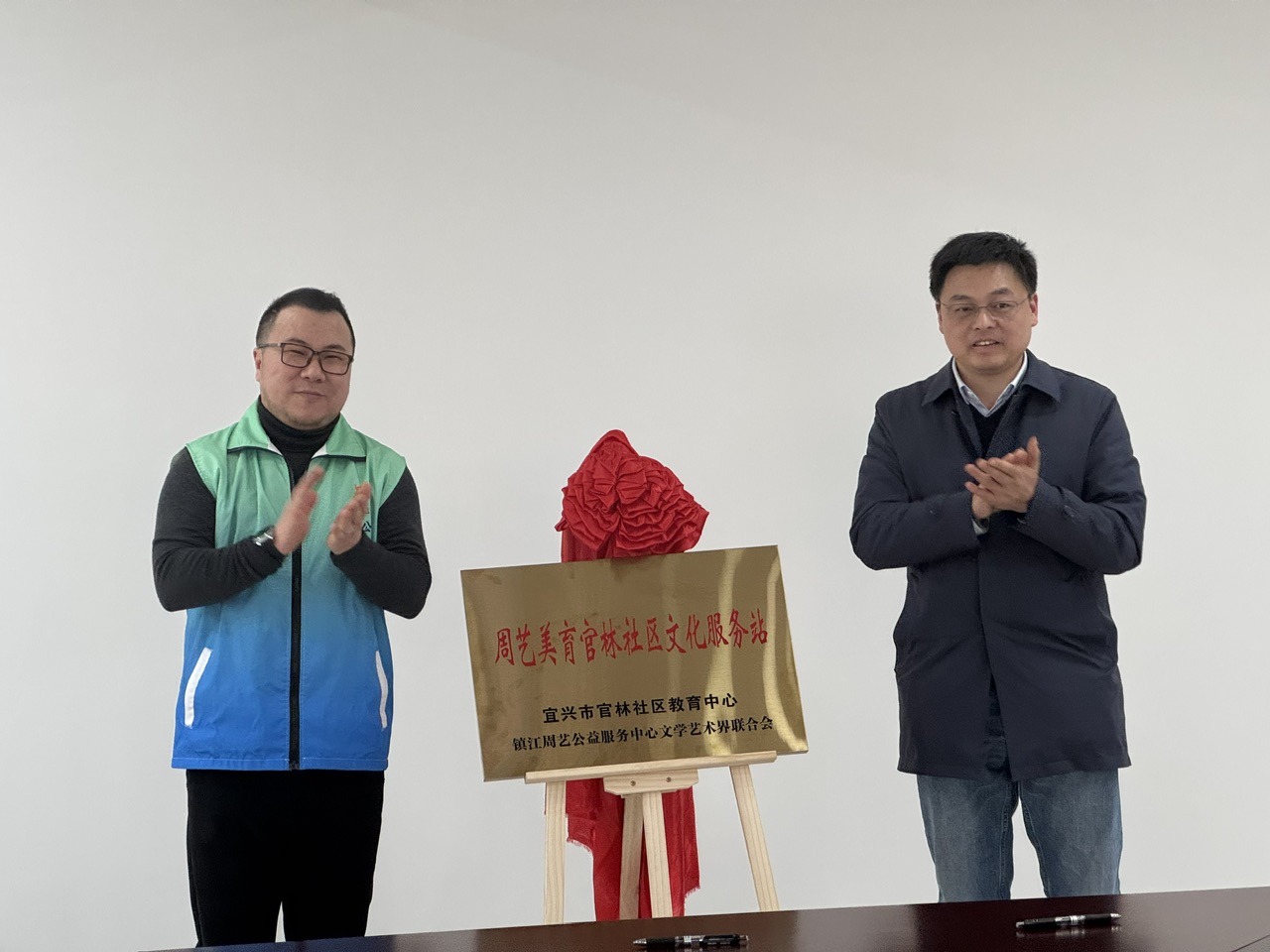 1月16日下午,江苏省无锡市宜兴市官林镇官林社区教育中心二楼会议室内暖意融融,江苏镇江周艺公益服务中心与无锡市宜兴市官林社区教育中心共建的周艺美育官林社区文化服务站揭牌仪式在此隆重举行。此次合作以“目标共商、发展共谋、资源共享、文明共创”为愿景,将专业美育服务送到居民“家门口”,为社区文化惠民事业注入全新活力。