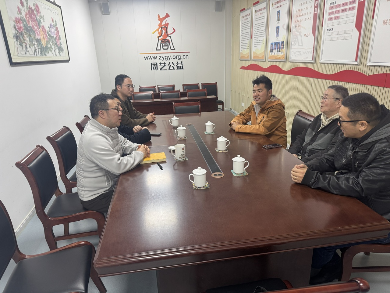 民盟镇江市委周艺公益培训基地主任、镇江周艺公益服务中心理事长蒋周健,民盟京口委员会副主委王伟,民盟镇江周艺公益服务中心支部委员刘源,民盟盟员张金共同接待来访一行。