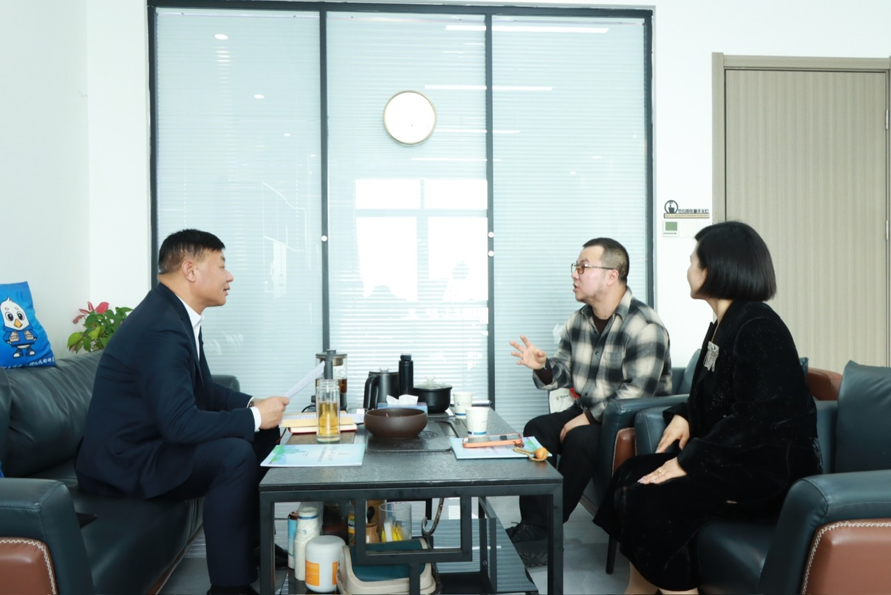 调研期间,蒋周健理事长与舒视鹰总经理苏杰、大区经销商孔德兰分别进行座谈交流。苏杰对蒋周健的来访表示热烈欢迎,详细介绍了企业发展概况、核心业务及公益初心。蒋周健也全面介绍了周艺公益服务中心的发展历程、公益项目布局与社会服务成果。