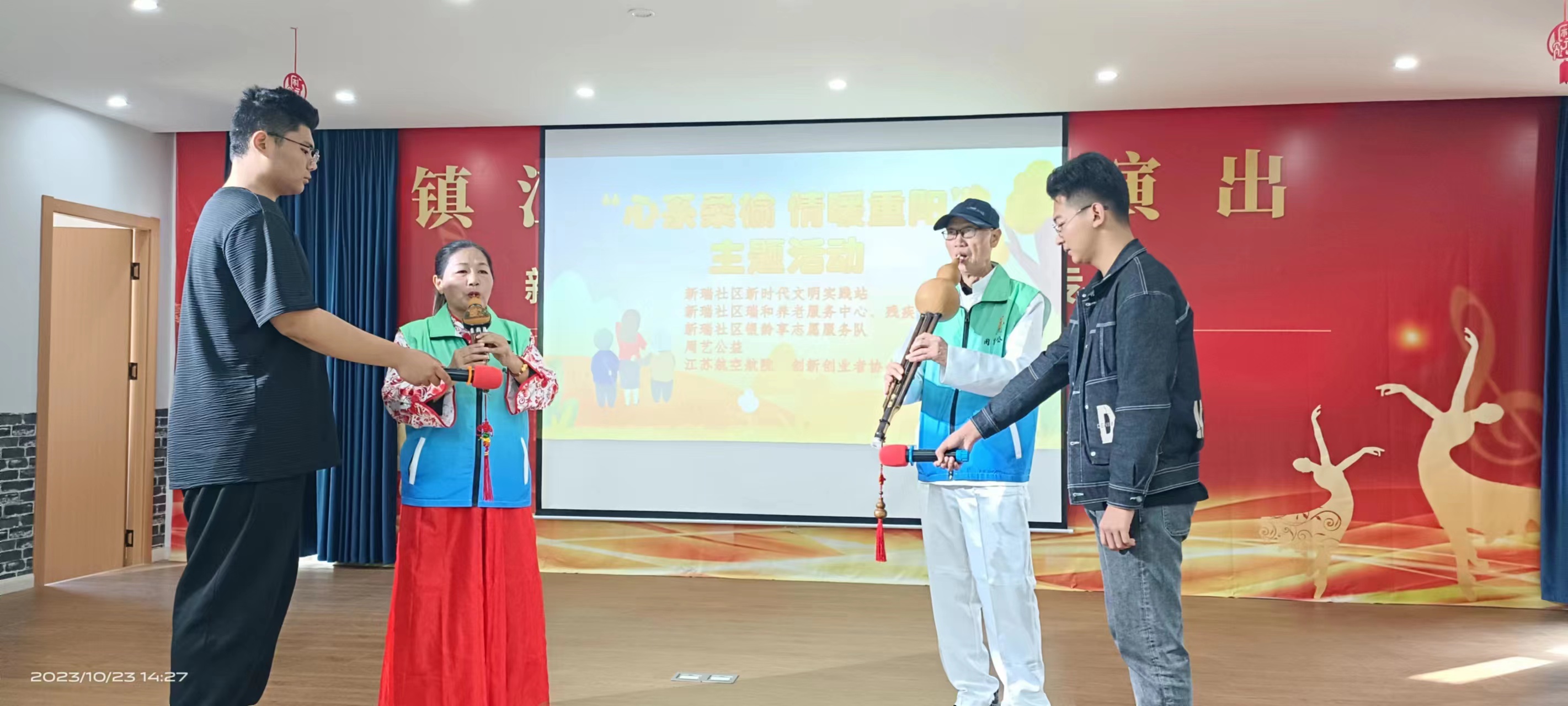 10月23日下午,在九九重阳日的当天,镇江周艺公益文艺志愿服务队、江苏航空航院、创新创业者协会等单位联合走进镇江新区丁岗镇新瑞社区,开展“心系桑榆 情暖重阳”主题敬老活动。