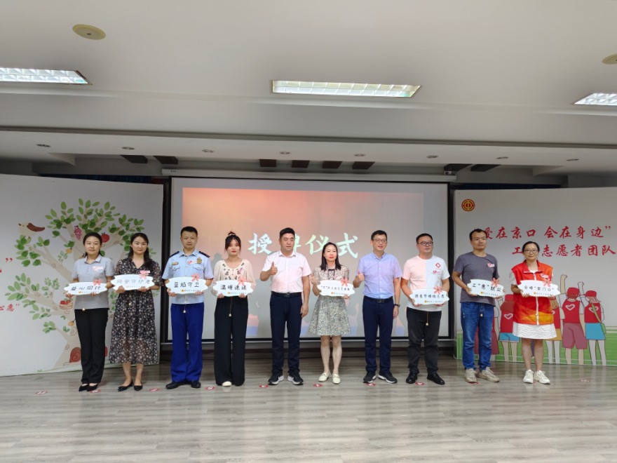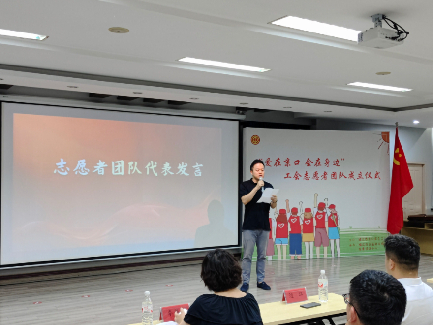 2023年8月8日下午,京口区总工会在京口经开区李华社区党群服务中心举办“爱在京口 会在身边”工会志愿者团队成立仪式暨“筑爱助残 共享阳光”情系一线职工圆梦微心愿活动。