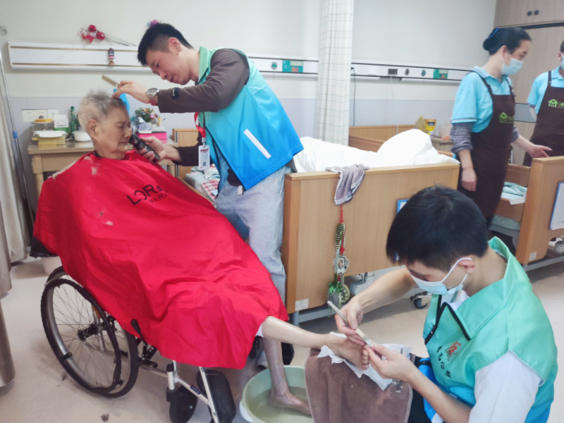 一进护理院,志愿者们就热情的和老人们打招呼,“您老精神真好”“您头发有些长,我帮你剪啊”“水温还好吗?您泡下脚”。老人们围上来,选择需要服务的项目。志愿者们忙里忙外,一上午服务了40多位老人。