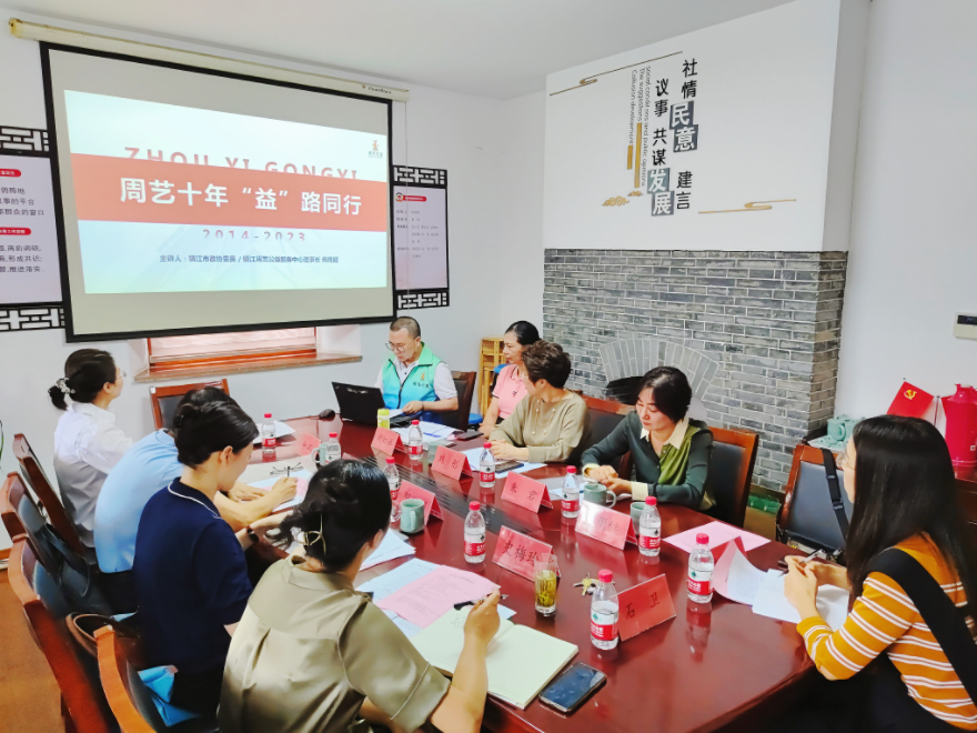 座谈会上,市政协委员、周艺公益理事长蒋周健作为志愿服务组织代表,作了《周艺十年“益”路同行》的主题报告,围绕“急社会之所需,尽自己之所能”的公益理念,通过现场PPT的展示,从“发展与宗旨”“品牌项目”“阵地建设”“初心如磐”四个方面展开,详细地诠释了周艺公益近十年来的善行义举。