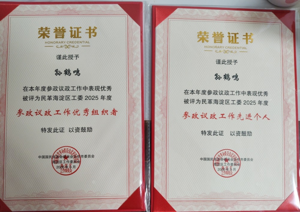 近日,民革北京市海淀区工作委员会公布2025年度表彰名单,中国文化信息协会文产融合发展工作委员会副秘书长、江苏第二师范学院音乐学院音乐普及推广中心副主任、镇江周艺公益服务中心理事孙鹤鸣凭借在参政议政工作中的突出表现,同时荣获参政议政工作优秀组织者与参政议政工作先进个人两项荣誉,以实际行动践行民主党派成员的责任担当,为周艺公益的多元化发展再添亮色。