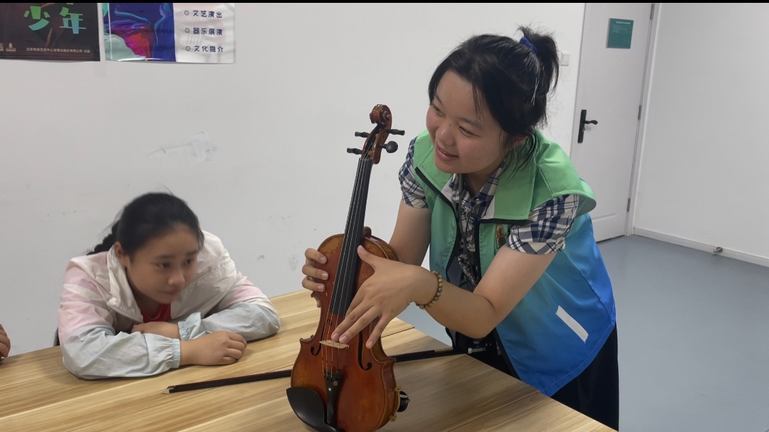 作为深耕公益美育一线的青年教师,虞静怡始终以志愿服务为初心,连续三年主动参与周艺公益暑托班项目,为困境儿童、外来务工人员子女等群体义务讲授小提琴课程。课堂上,她以耐心为笔、专业为墨,不仅细致传授演奏技巧,更通过艺术启蒙唤醒孩子们的审美感知与表达自信,让公益课堂成为滋养心灵、传递温暖的成长港湾。